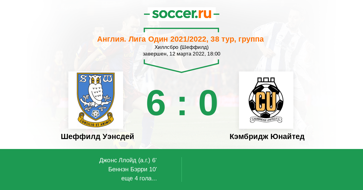 6' (1:0) Автогол Джонс Ллойд (6)