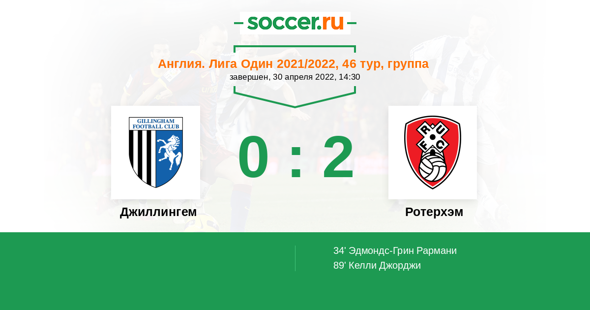 34' (0:1) Эдмондс-Грин Рармани (23) (Барласер Даниэль (4))