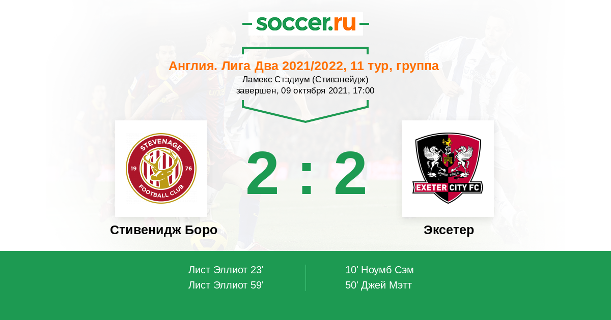 59' (2:2) Лист Эллиот (7) (Ривз Джейк (4))