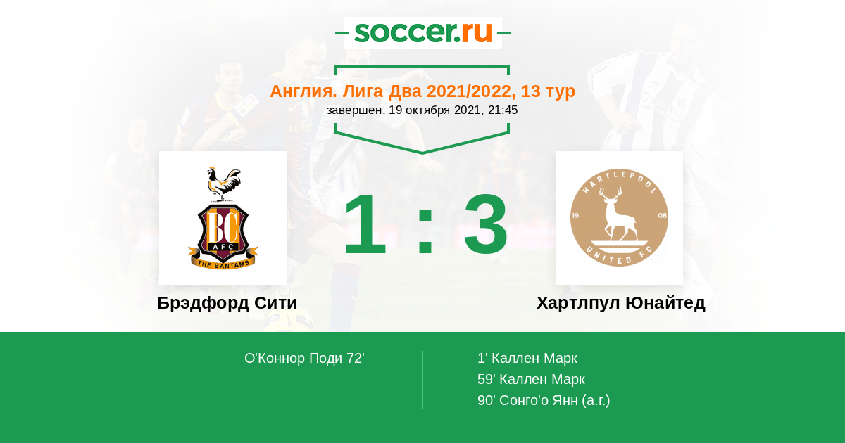 72' (1:2) О'Коннор Поди (4) (Кук Каллум (8))