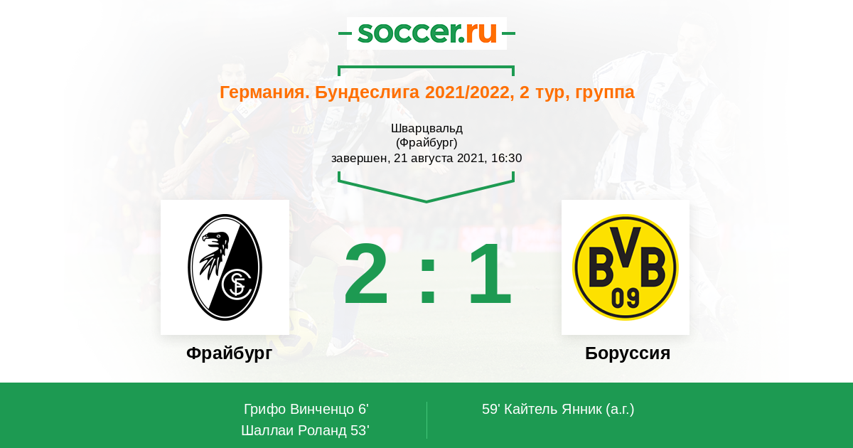 После поражения в Суперкубке Боруссия бросит все силы на Бундеслигу. Фрайбург лишь 5 раз выиграл у "шмелей". Последняя победа пришла на 20 тур прошлой Бундеслиги.