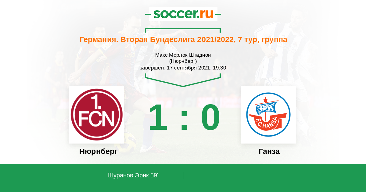После шести туров у команды Нюрнберг 10 очков команда выиграла две игры и в четырёх разошлась с миром. Команду отделяют три очка от зоны попадания в лигу выше. Поэтому в игре против команды Ганза хозяева постараться добиться для себя нужного результата. Прогноз на этот матч, тотал больше в 1-м тайме 1.5. Удачи