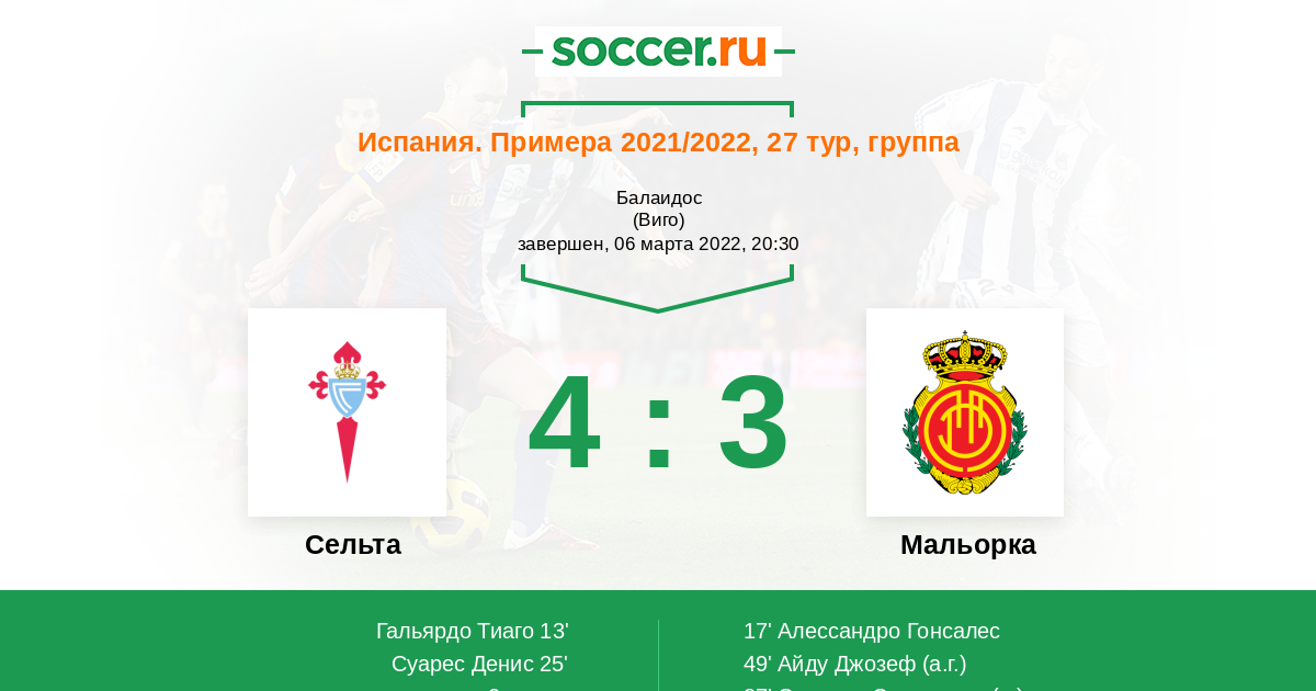 25' (2:1) Суарес Денис (6) (Аспас Яго (10))