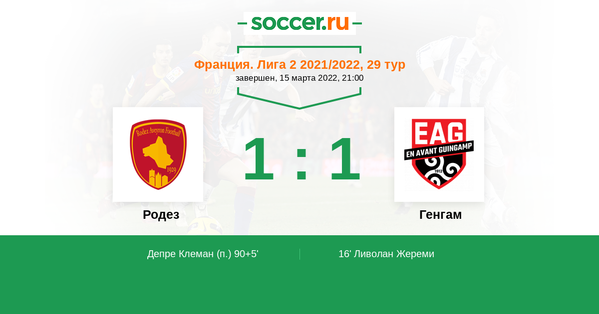 16' (0:1) Ливолан Жереми (29) (М'Шангама Юссуф (10))
