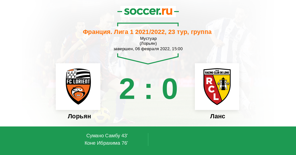 43' (1:0) Сумано Самбу (32) (Лорьент Арман (28))