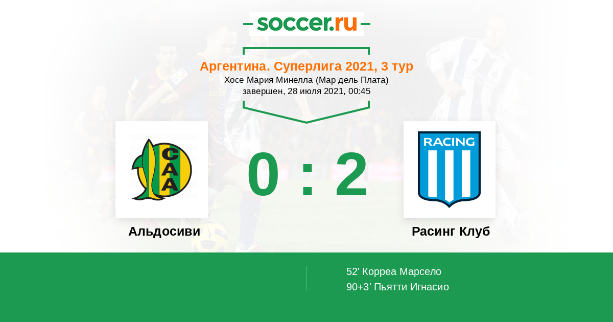 90+3' (0:2) Пьятти Игнасио (11) (Алькарас Карлос (26))