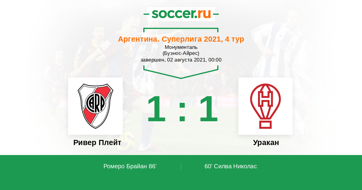 60' (0:1) Силва Николас (24) (Триверио Энрике (9))
