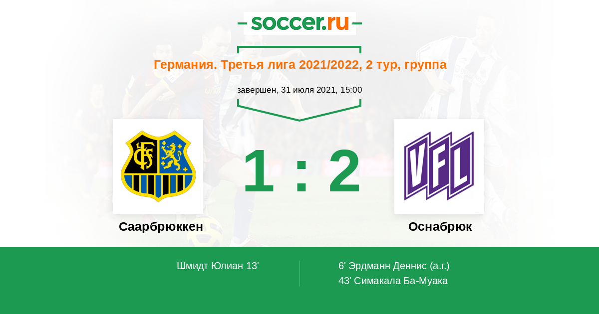 13' (1:1) Шмидт Юлиан (20) (Гнаасе Дейв (26))