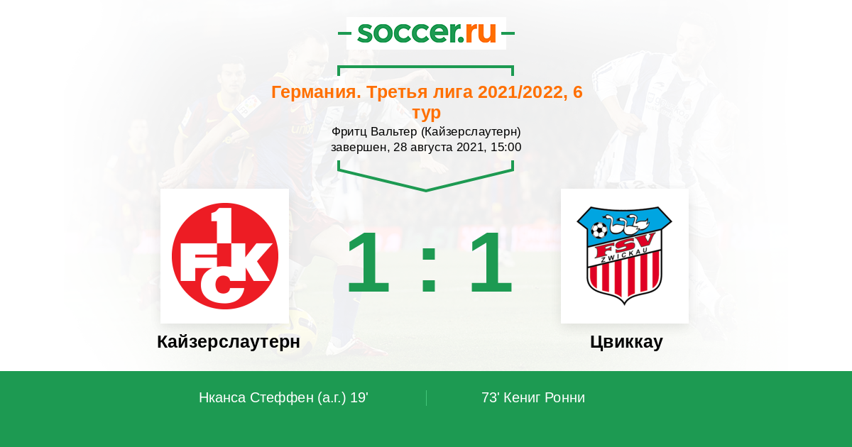 19' (1:0) Автогол Нканса Стеффен (25)