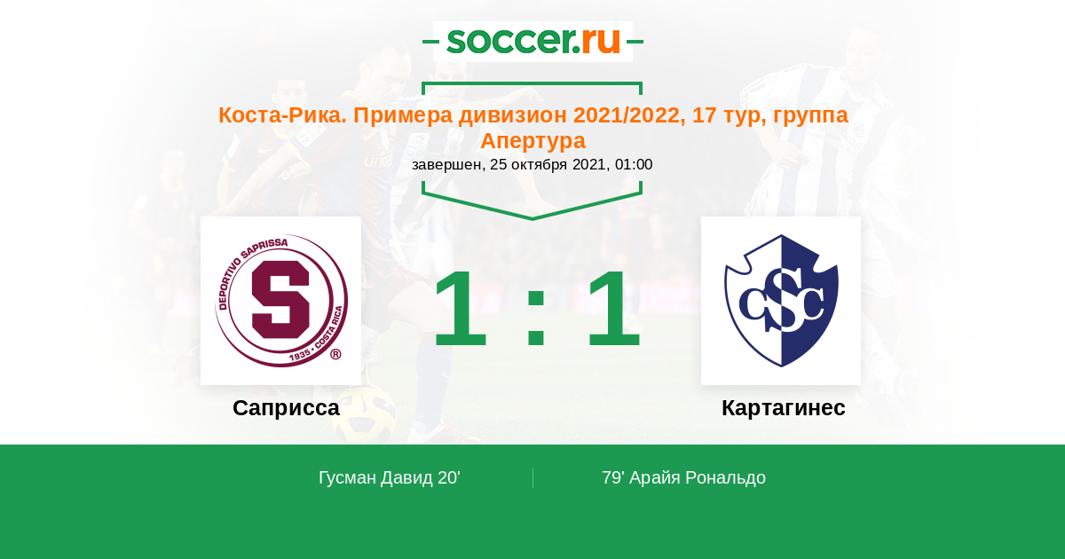 Матчи Коста-Рика. Примера дивизион 2021/2022