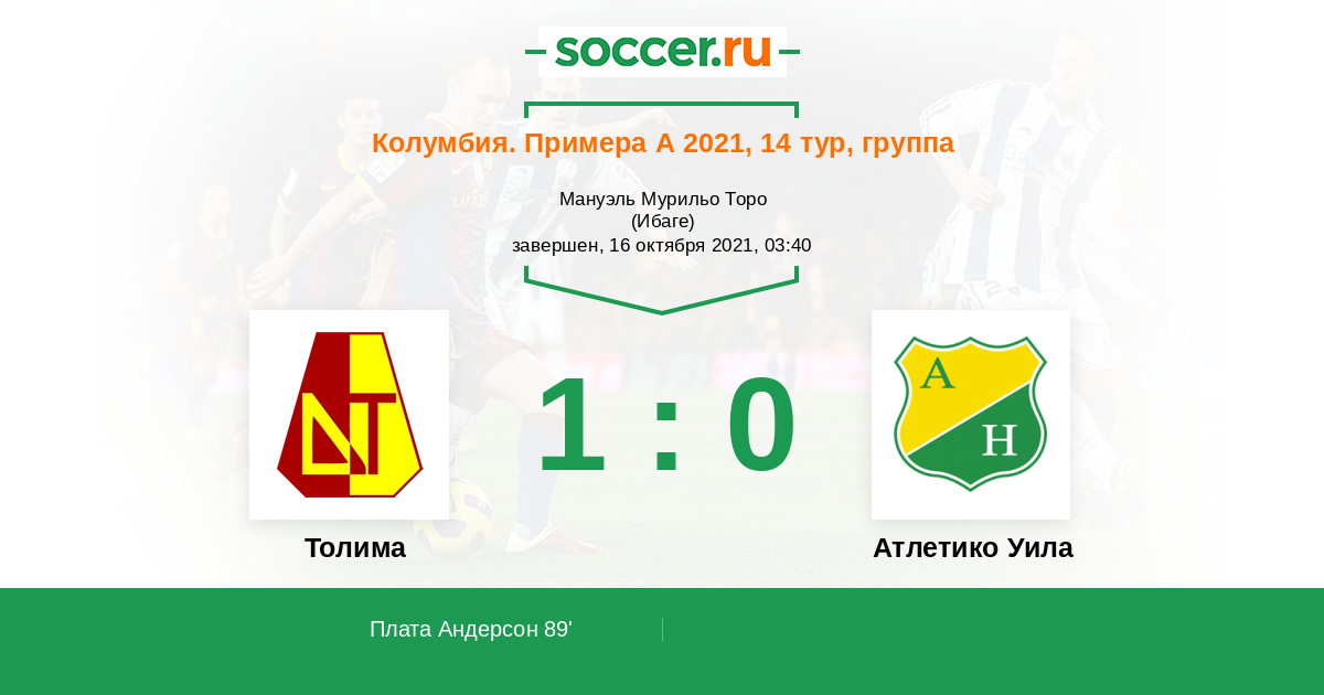 89' (1:0) Плата Андерсон (11) (Рамирес Густаво (27))