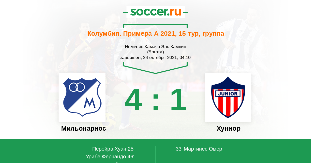 33' (1:1) Мартинес Омер (14) (Веласко Эдвин (3))