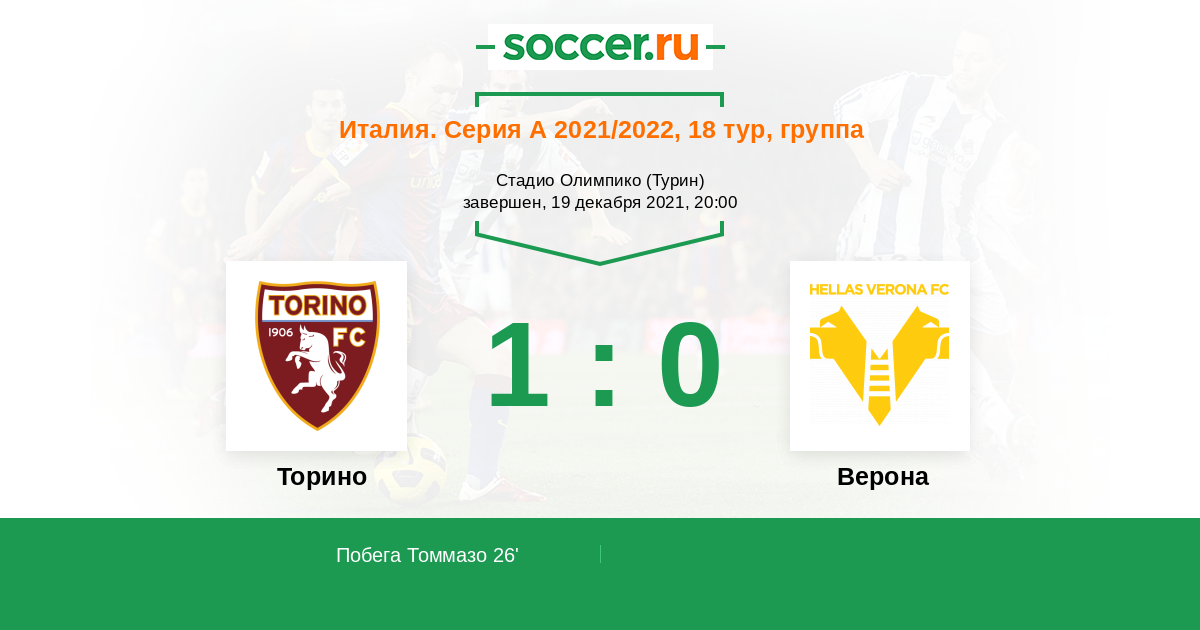 26' (1:0) Побега Томмазо (4) (Санабрия Антонио (19))