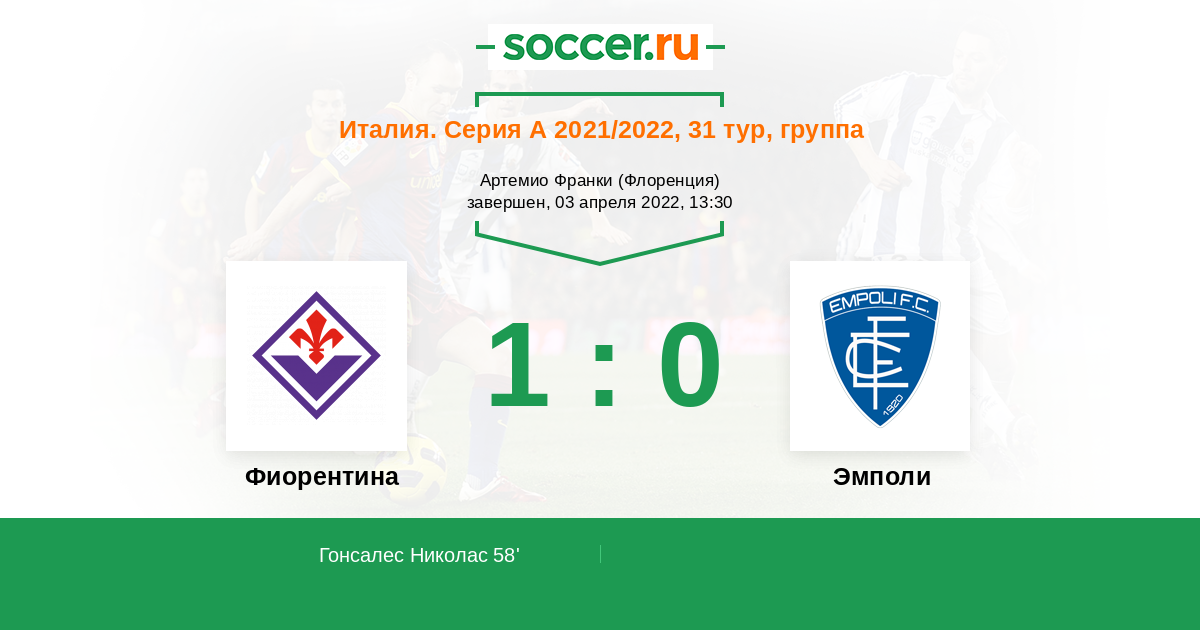 В матче встречающихся завтра в итальянской Серии-А команд Фиорентина и Эмполи рискну поставить на победу хозяев потому, как они располагаются выше в турнирной таблице, плюс активнее атакуют и надёжнее обороняются.