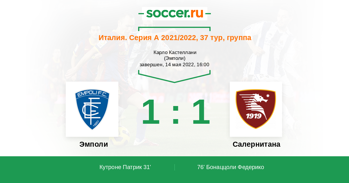 “Салернитане” нужно выигрывать — сзади подпирают “Кальяри” и “Дженоа”, которые могут обогнать “гранатовых” в случае неудачи и вернуть в лифт в Серию B. Мотивация “Эмполи” под большим вопросом, но Аурелио Андреацолли точно не откажется от оборонительного футбола.