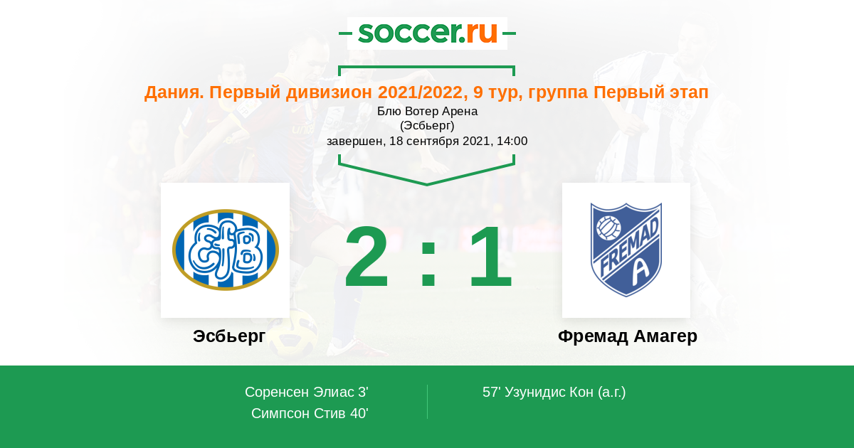 40' (2:0) Симпсон Стив (39) (Якобсен Никлас (19))