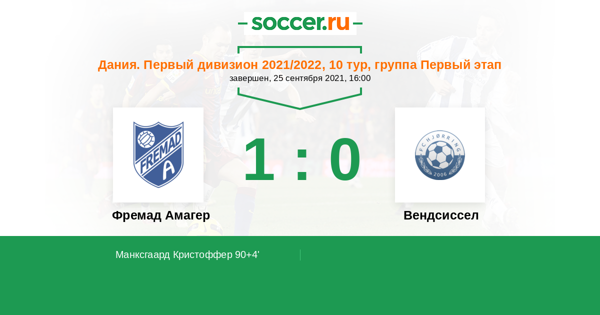 90+4' (1:0) Манксгаард Кристоффер (9) (Якоб Стеффенсен (5))