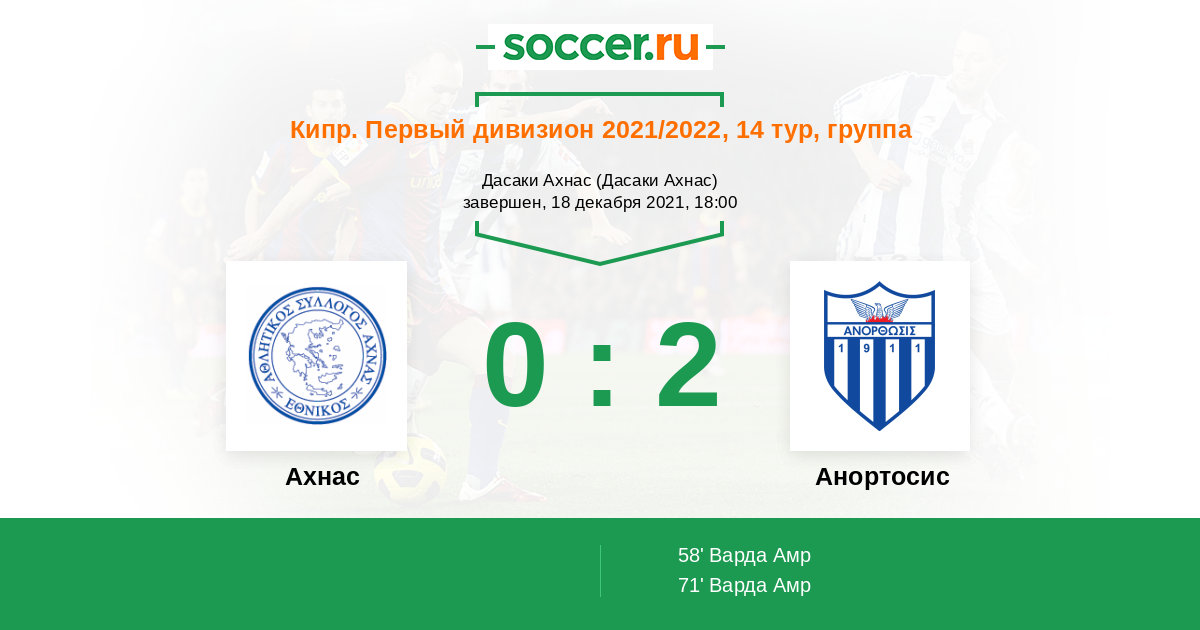 58' (0:1) Варда Амр (74) (Христодулопулос Лазарос (10))