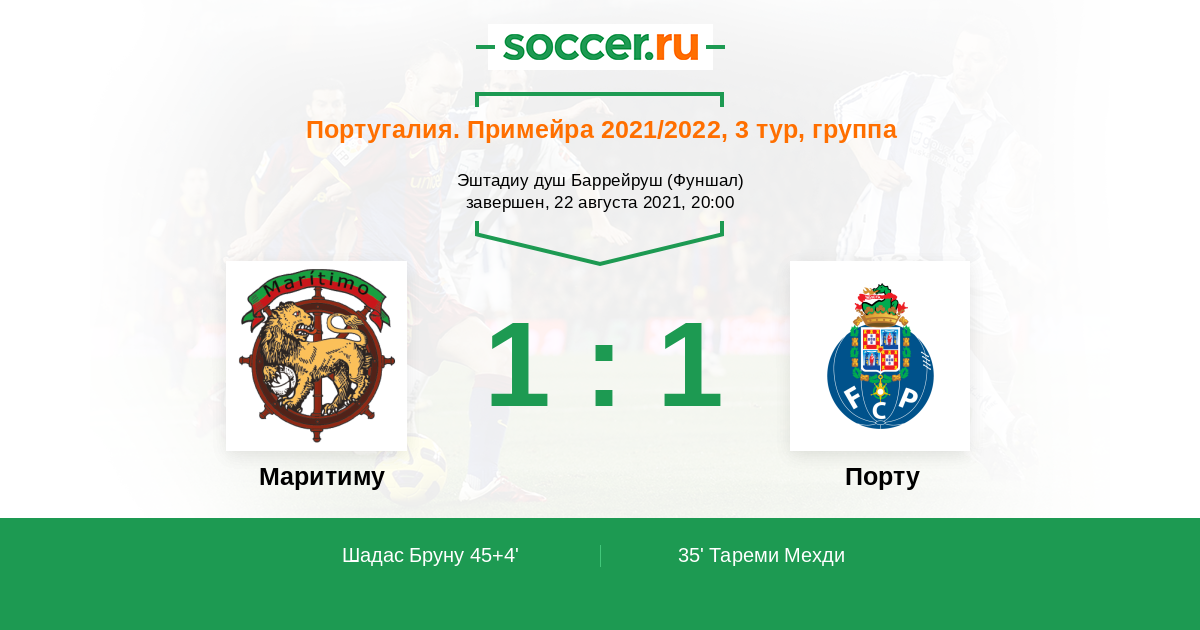 45+4' (1:1) Шадас Бруну (17) (Витор (94))