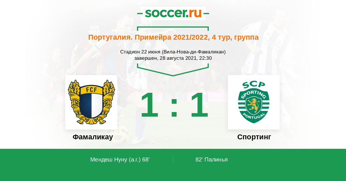 Стадион Стадион 22 июня (Вила-Нова-ди-Фамаликан), зрителей: 1332