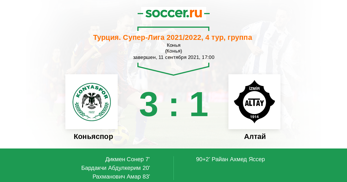 7' (1:0) Дикмен Сонер (14) (Цикалеши Соколь (17))