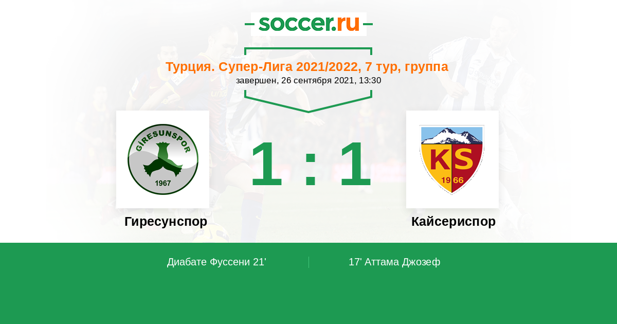 21' (1:1) Диабате Фуссени (18) (Явру Зеки (5))