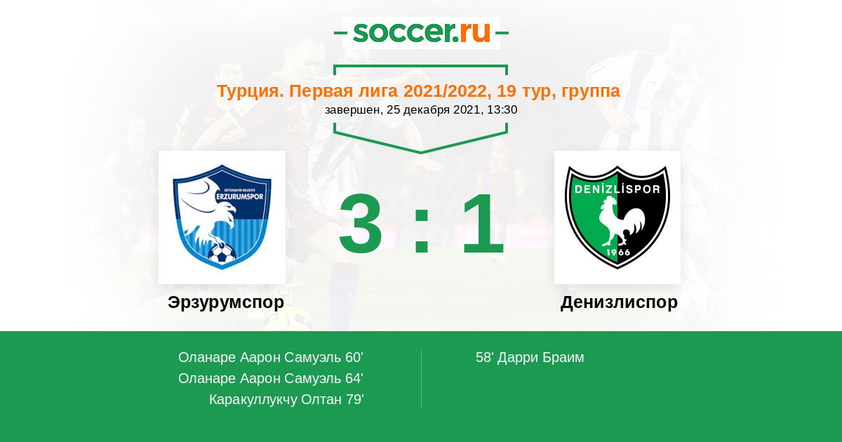 64' (2:1) Оланаре Аарон Самуэль (25) (Овачикли Орхан (35))