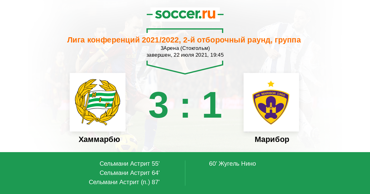 64' (2:1) Сельмани Астрит (21) (Людвигсон Густав (16))
