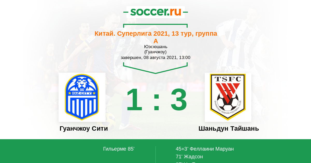 85' (1:2) Гильерме (12) (Цзян Цзихун (19))