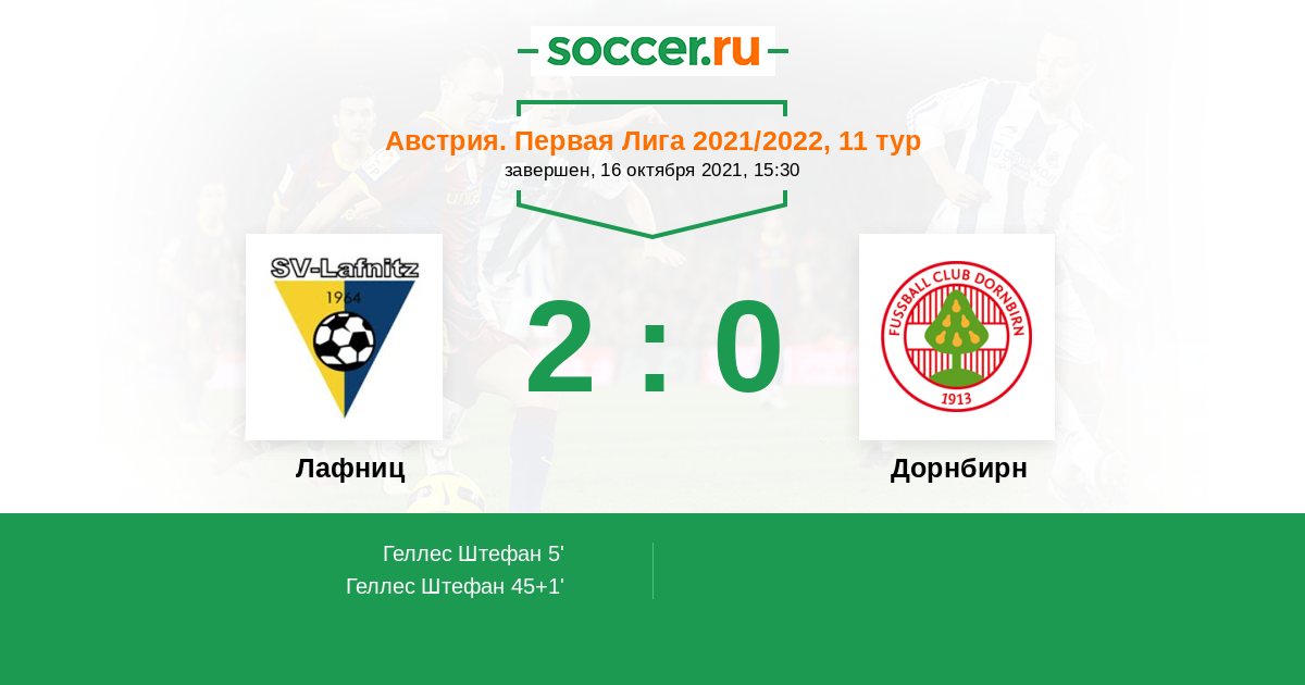 5' (1:0) Геллес Штефан (29) (Крофль Марио (14))