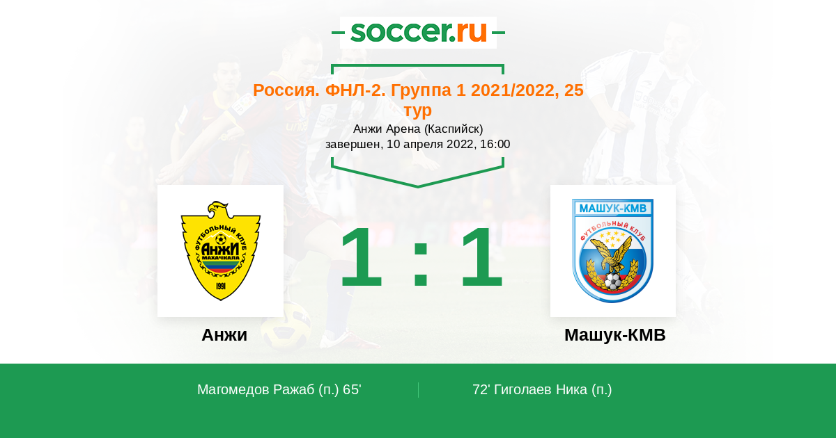 65' (1:0) Магомедов Ражаб