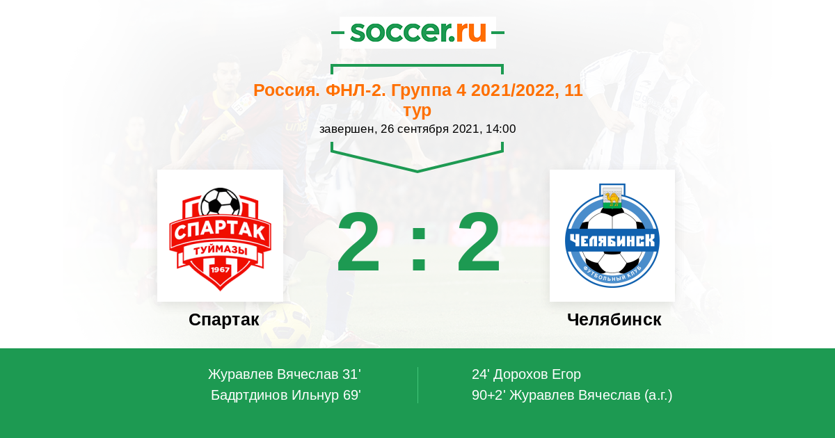 90+2' (2:2) Автогол Журавлев Вячеслав
