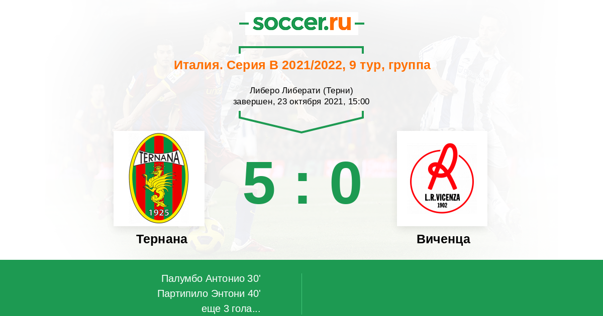 В этом сезоне Виченца - один из главных поставщиков очков для других клубов: 7 поражений в восьми матчах, правда проигрывают почти всегда минимально. Фактор своего поля должен помочь Тернане взять 3 очка с таким соперником.