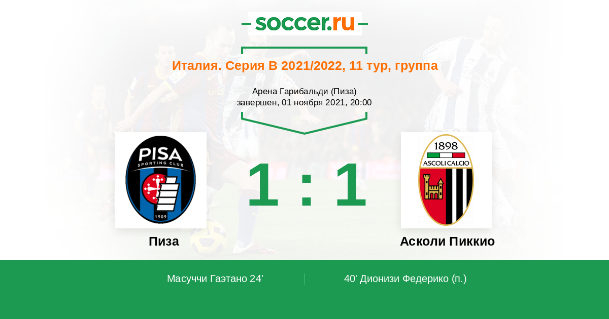 24' (1:0) Масуччи Гаэтано (26) (Лукка Лоренцо (9))