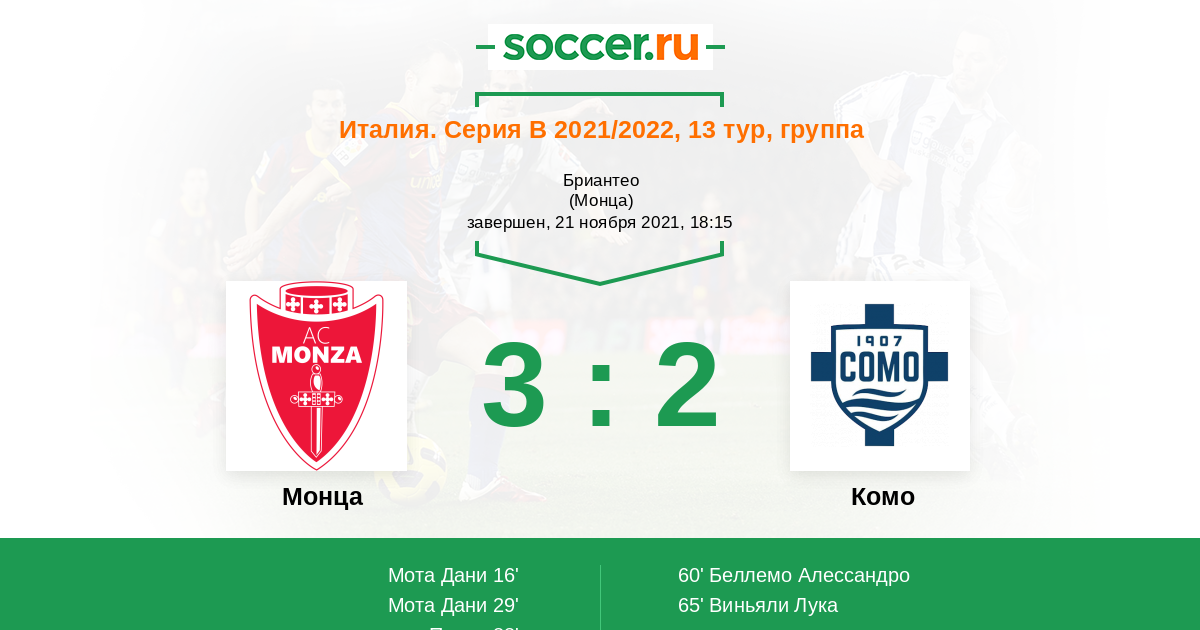 29' (2:0) Мота Дани (47) (Д'Алессандро Марко (77))