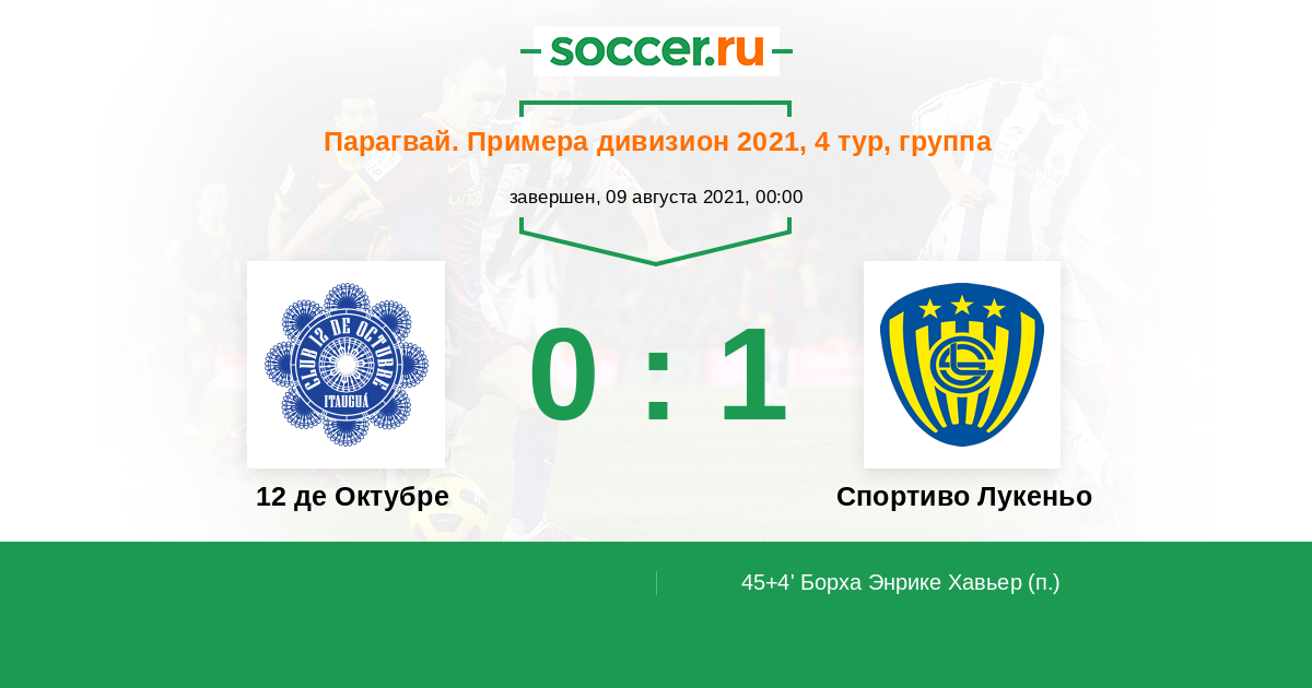 45+4' (0:1) Борха Энрике Хавьер (22)