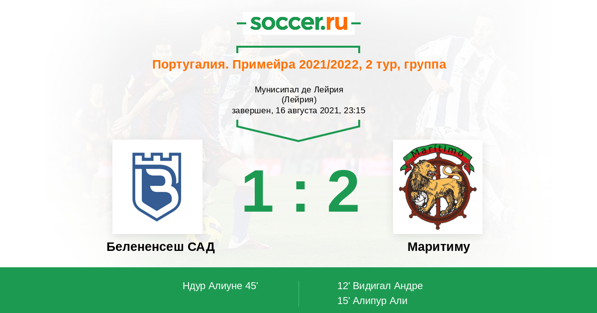 12' (0:1) Видигал Андре (7) (Витор (94))