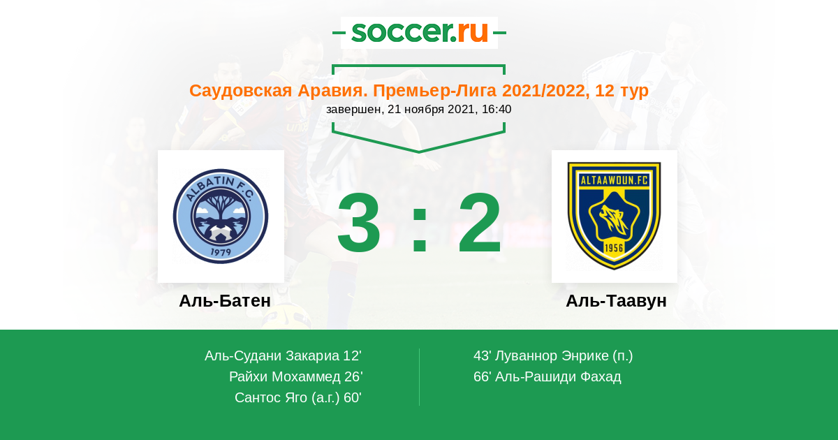 12' (1:0) Аль-Судани Закариа (21) (Эль-Жебли Юссеф (10))