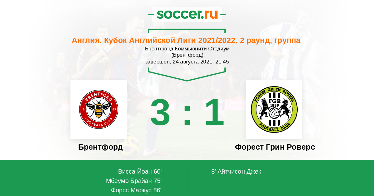75' (2:1) Мбеумо Брайан (19) (Томпсон Доминик (2))
