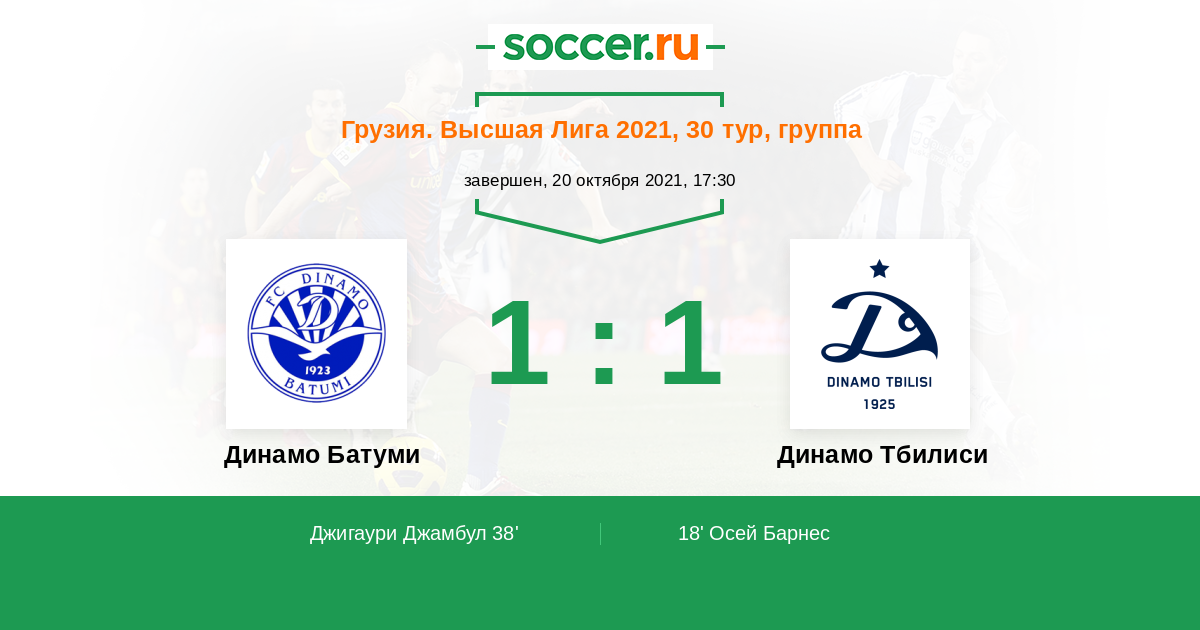 38' (1:1) Джигаури Джамбул (8) (Панцулая Гиорги (14))
