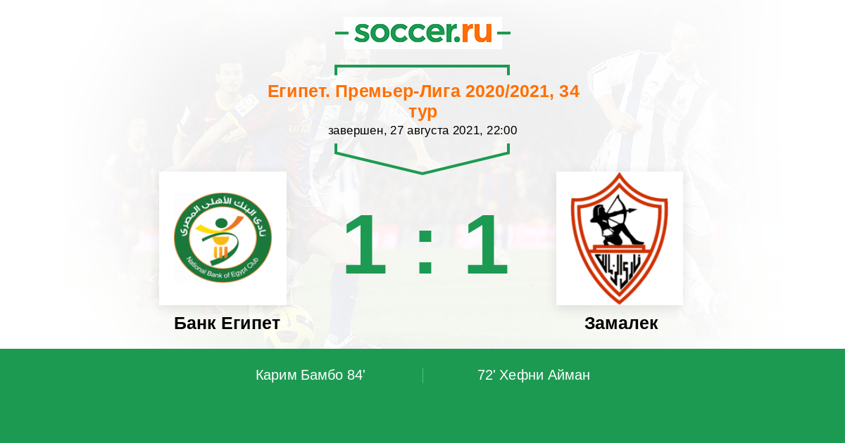 72' (0:1) Хефни Айман (18) (Эмам Хазем (7))