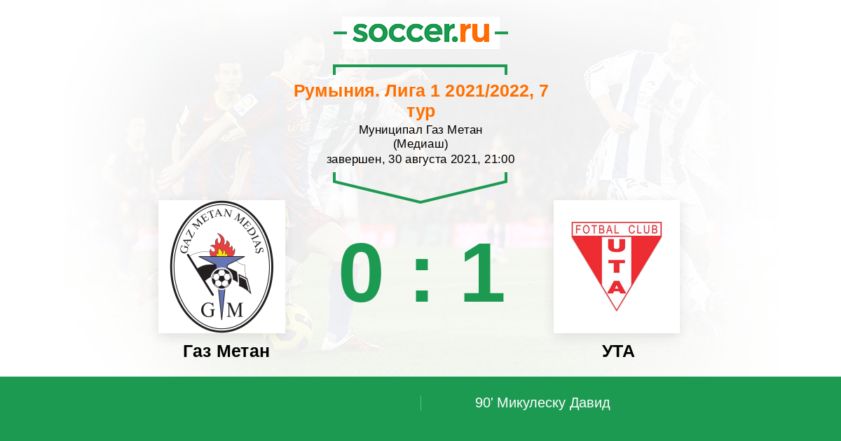 Гол90' (0:1) Микулеску Давид (10) (Антал Ливиу (8))