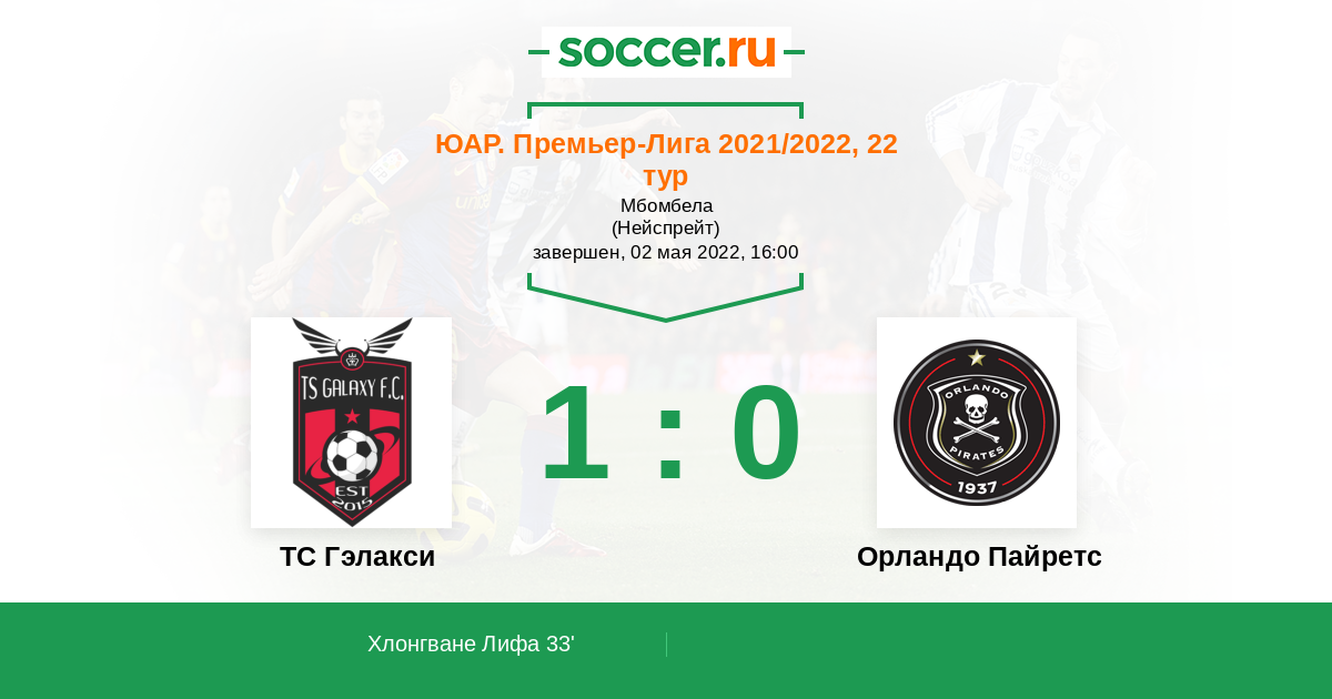 33' (1:0) Хлонгване Лифа (13) (Мбата Линдокуле Джон (35))