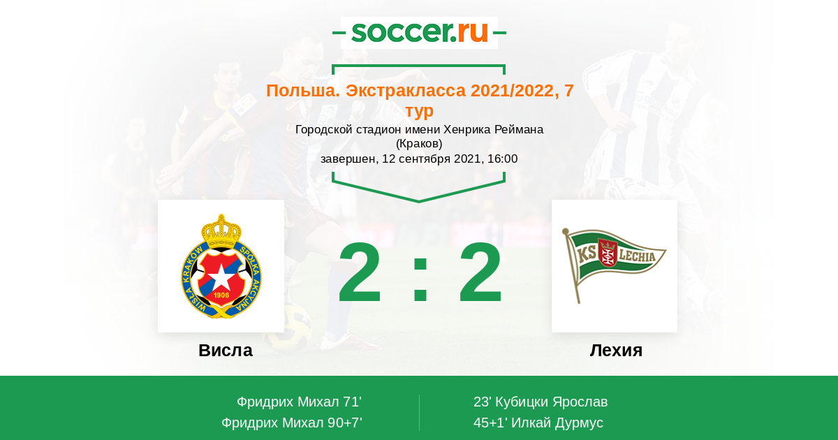 Гол90+7' (2:2) Фридрих Михал (25) (Хуги Дор (7))