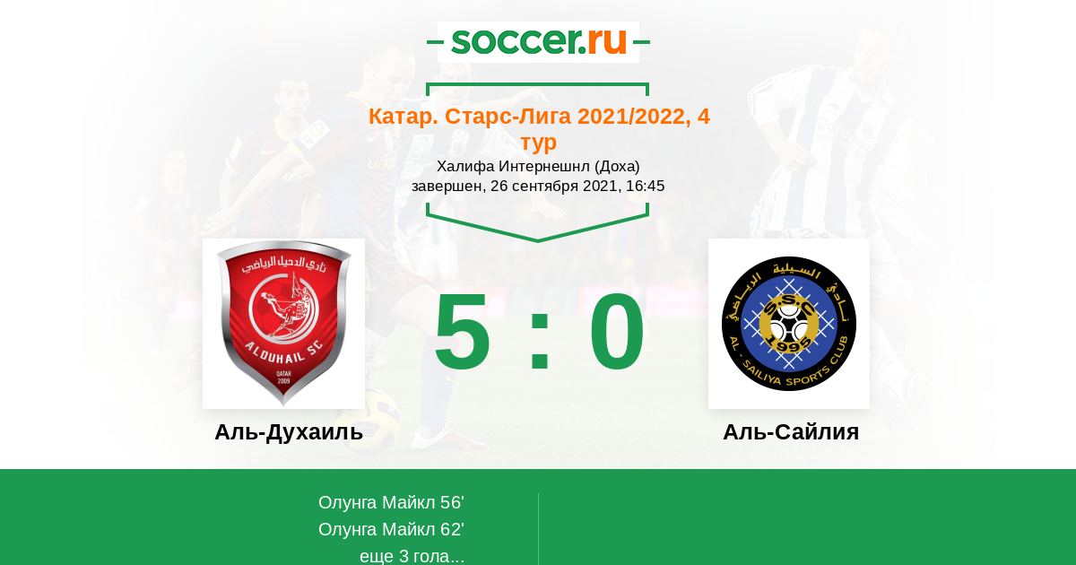 56' (1:0) Олунга Майкл (14) (Алмоез Али (11))
