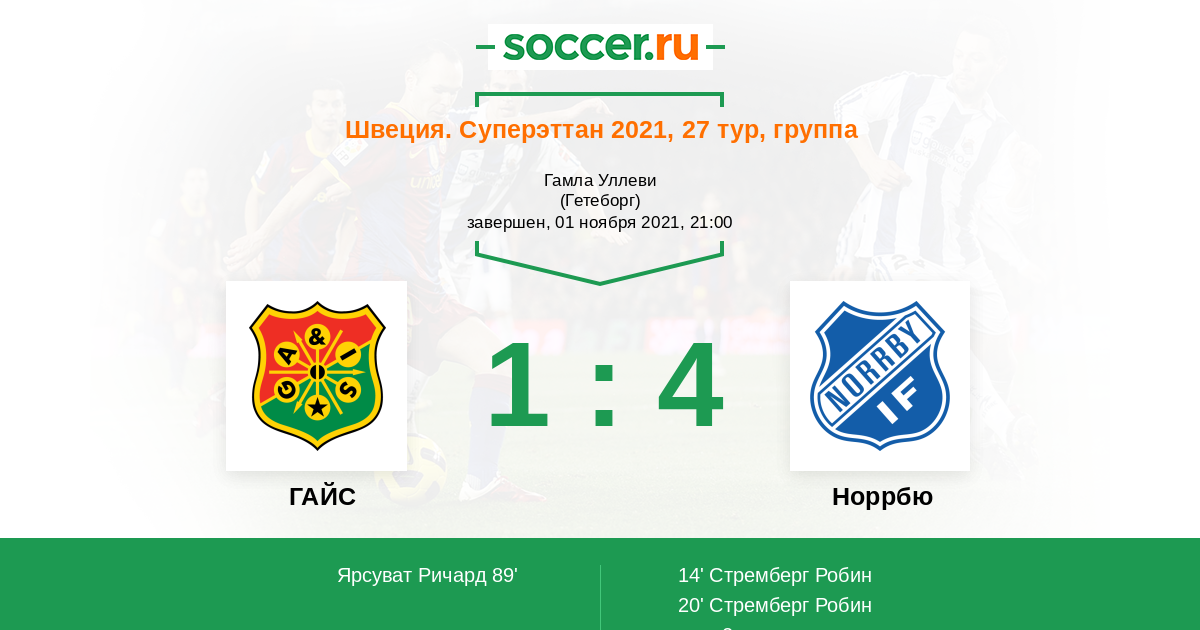 Гол89' (1:4) Ярсуват Ричард (12) (Аугуст Вэнгберг (6))