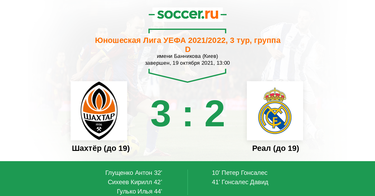 Матчи Юношеская Лига УЕФА 2021/2022