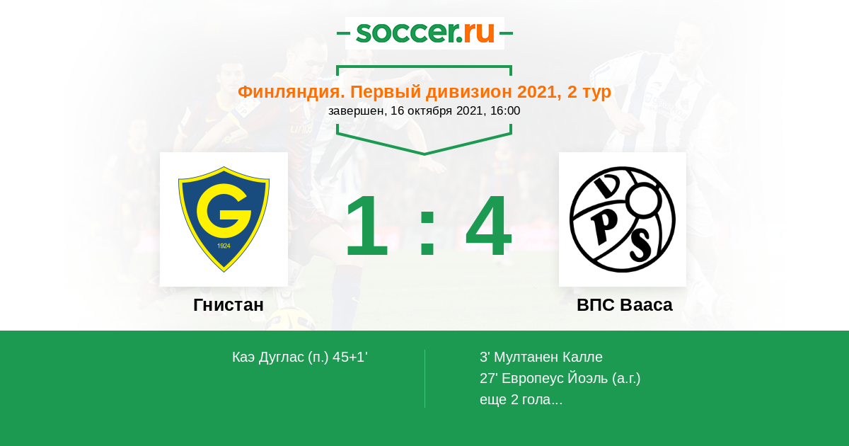 27' (0:2) Автогол Европеус Йоэль (14)