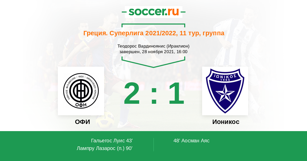 Замена90+3' Мигас Гиоргос (22) уходит с поля, Кабрал Джерсон (11) вышел на поле