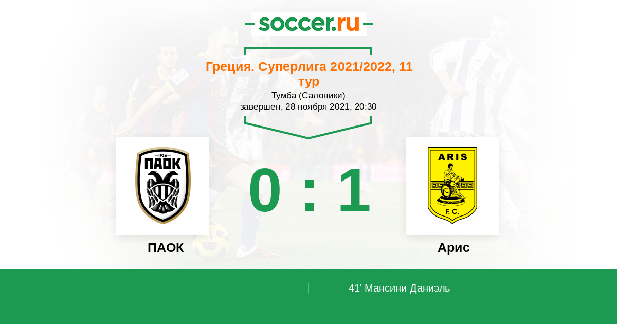 41' (0:1) Мансини Даниэль (7) (Н'Диайе Папе (17))